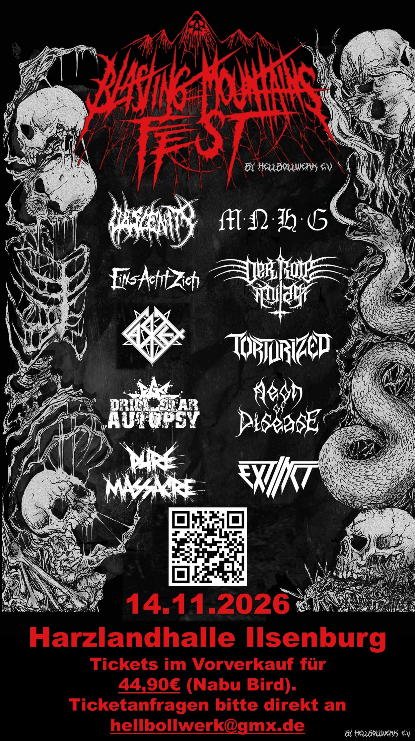 Am 14. November 2026 bringt das Blasting The Mountains Fest | Pt. 1 die Harzlandhalle in Ilsenburg zum Beben. Unter dem Banner des Hellbollwerk e.V., einem jungen, gemeinnützigen Kulturverein mit Wurzeln in der regionalen Underground-Szene, findet hier ein Festival statt, das die extreme Musikszene in der Region nachhaltig stärken will.