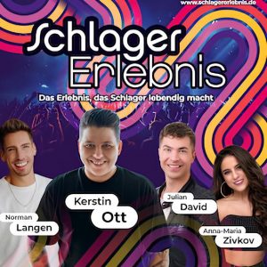 “SchlagerErlebnis” DIE SCHLAGERNACHT mit KERSTIN OTT * NORMAN LANGEN * MARIA ZIVKOV * JULIAN DAVID „SchlagerErlebnis“ DIE Schlagernacht der Superlative startet 2026. Und alsView More